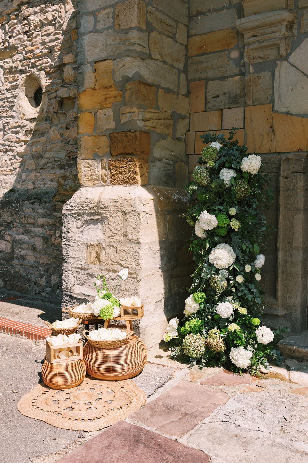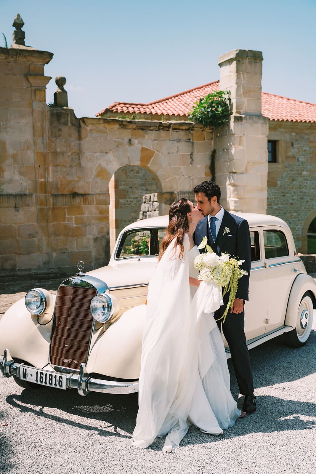 La ceremonia religiosa se celebró en la Iglesia Parroquial Santiago, en Ongayo (Suances). Un entorno sencillo y con encanto, rodeado de verde, que acompañó el momento con naturalidad. La decoración floral, a cargo de Mesa Presidencial, respetó el espacio y lo vistió con flores en tonos suaves, creando un ambiente acogedor y equilibrado.