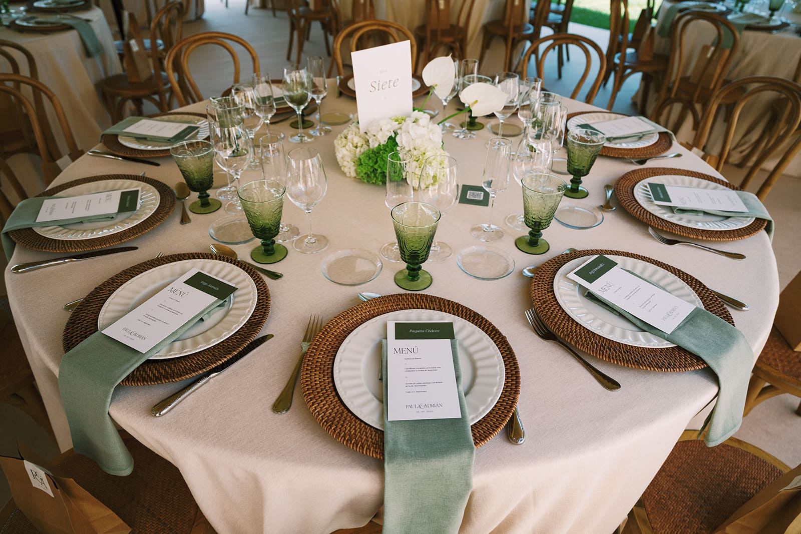De vuelta al Palacio de Mijares, los invitados disfrutaron del cóctel y el banquete en los jardines. Uno de los detalles más especiales fue la papelería, diseñada por la propia Paula, que aportó coherencia y personalidad a cada rincón de la celebración.