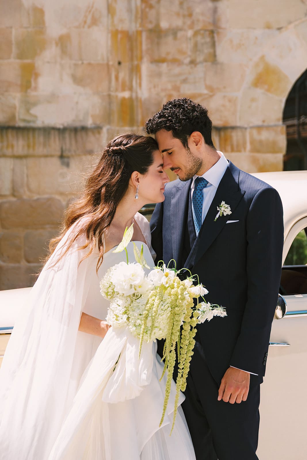 Paula empezó el día en el Palacio de la Helguera, un espacio tranquilo y luminoso que invitaba a disfrutar de los preparativos sin prisas. Allí se vistió con un diseño de Castellar Granados, de líneas fluidas y una caída impecable, muy acorde con su estilo romántico y sofisticado. Completó el look con zapatos de Flor de Ashoka, y un maquillaje y peinado naturales, a cargo de Erika Sánchez, que realzaban su belleza sin excesos. El ramo, diseñado por Mora Floristas, encajaba a la perfección con la estética del día: delicado, orgánico y elegante.
